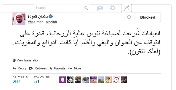 في تغريدة لسلمان العودة قال فيها: